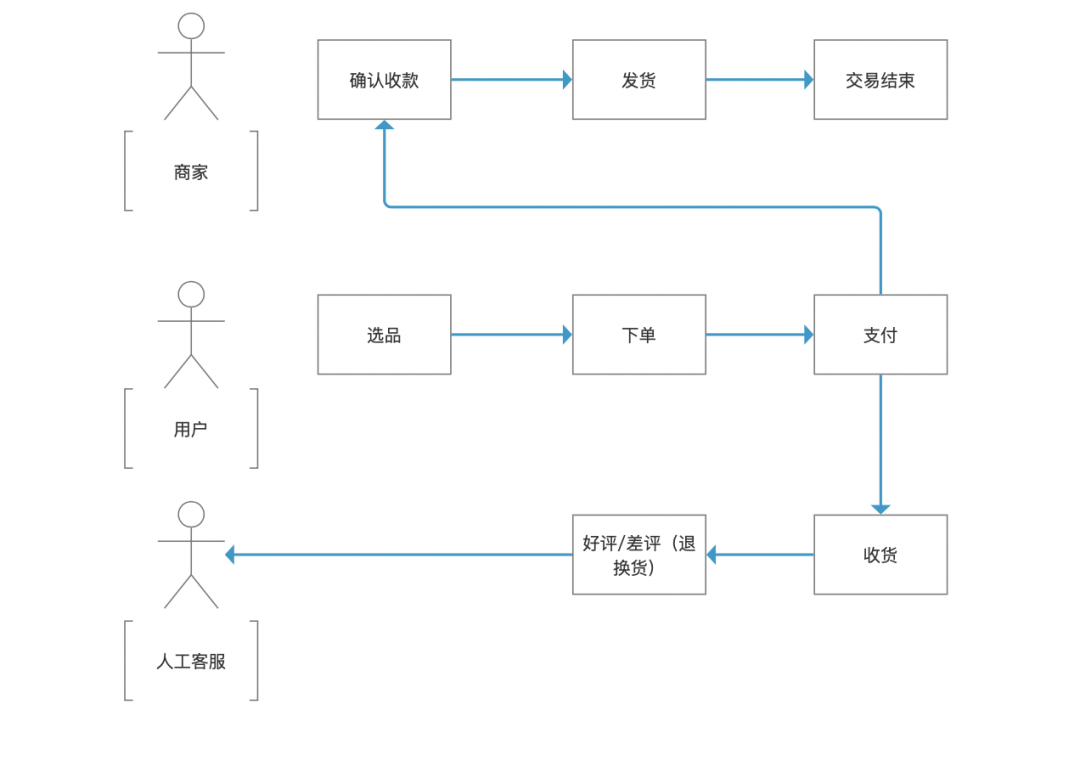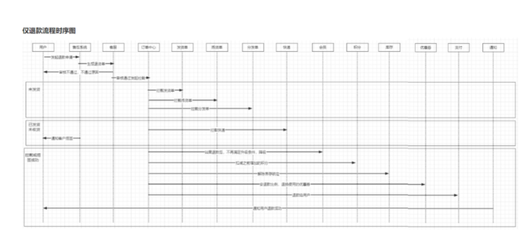 正向流程(用户支付、下单、购买)是绝大多数用户的购物体验,逆向流程则用户因为商品或其他原因,导致退货、退款、换货业务如下图订单系统的逆行流程,经过了财务、仓库、运营层层审批。