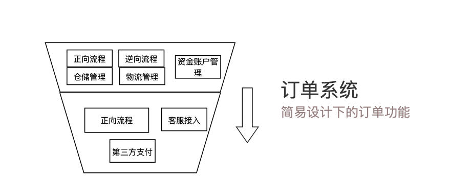 虽然是通用功能,但订单系统关联系统多,还支持种类繁多的逆向流程,整个电商系统其实就变得非常复杂。